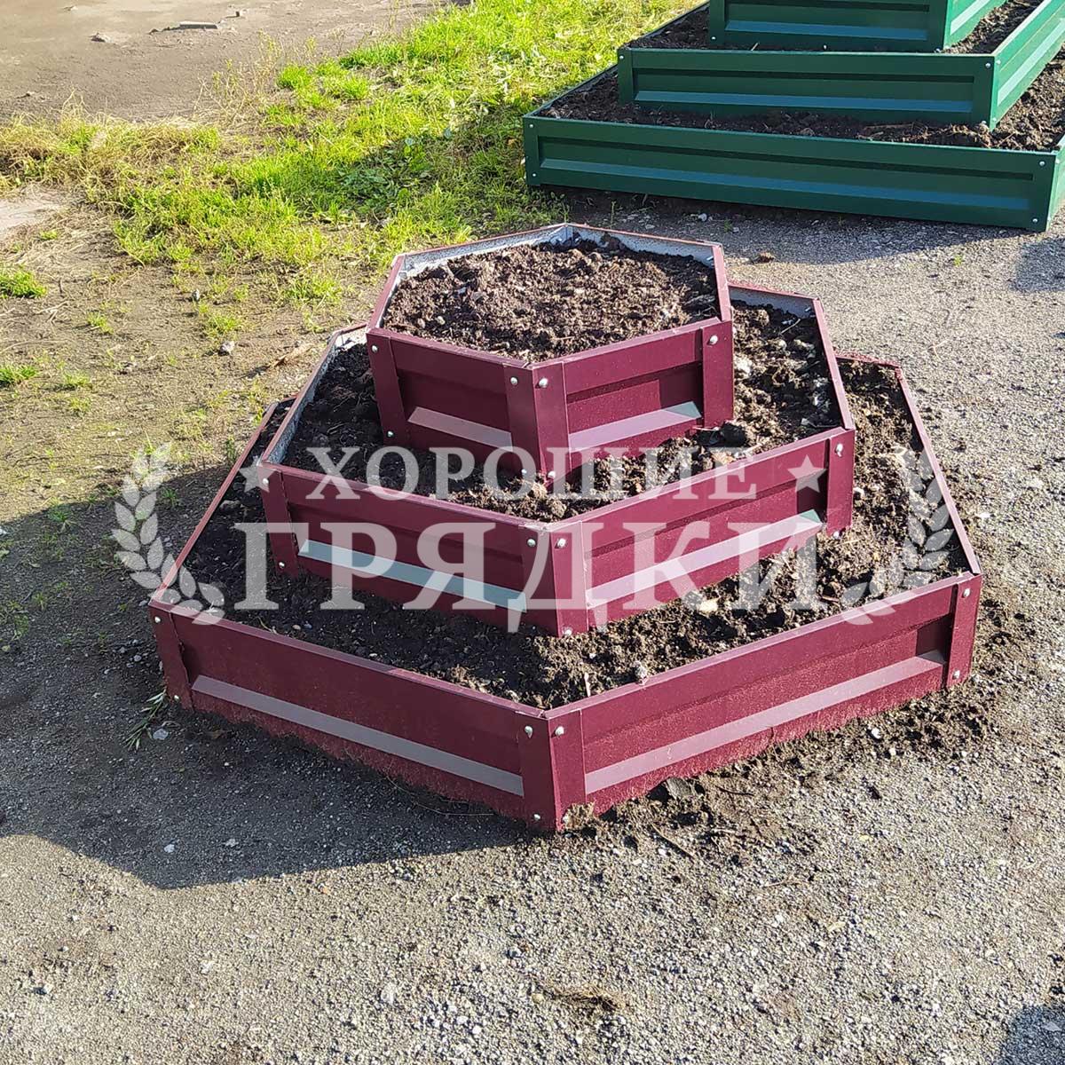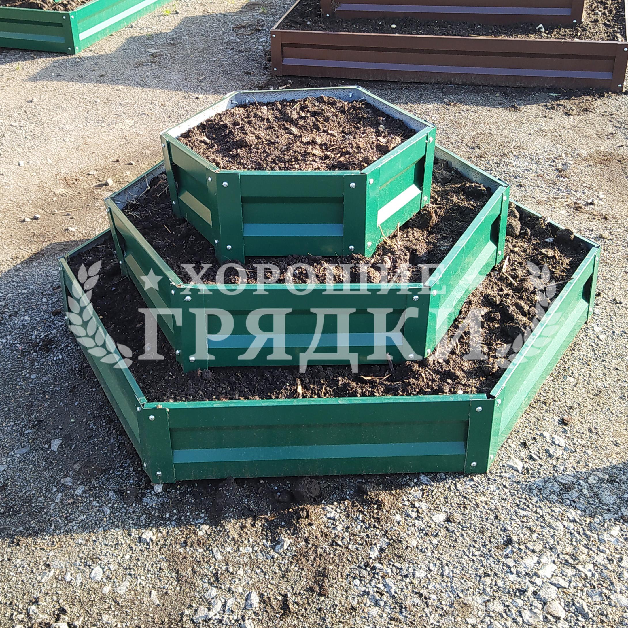 Клумба зеленая «Шестигранная 3 яруса» Ø 1.4м-1м-0.6м